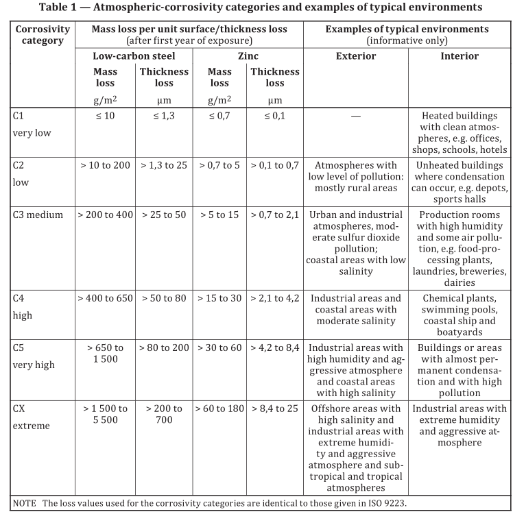 等级划分:共6类(C1~C5+CX),字母C是“Corrosivity(腐蚀性)”的缩写;